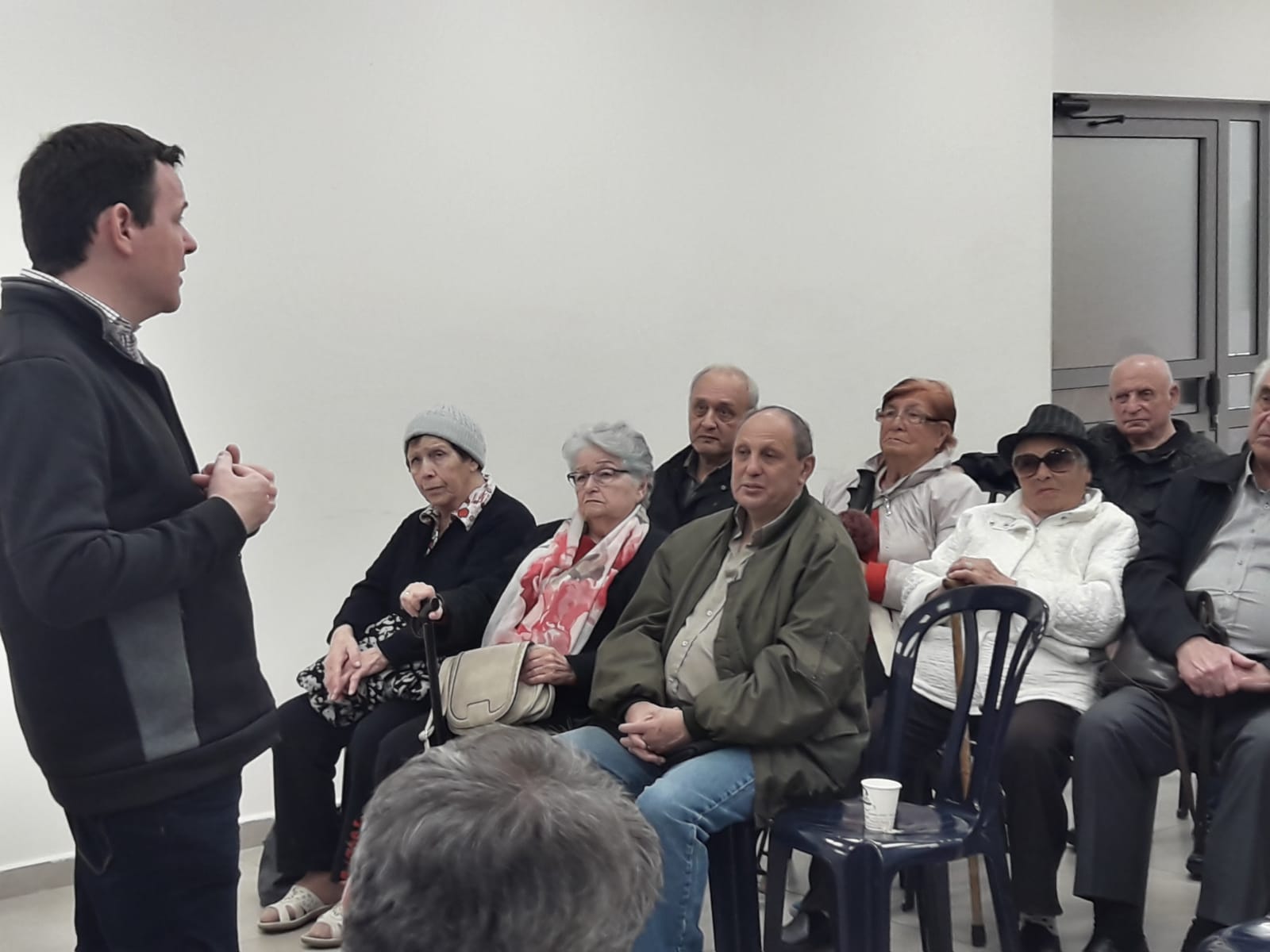 На встрече так же обсуждались проблемы старшего поколения жителей города Хайфы. Был затронут вопрос пенсий и пенсионной реформы, проблемы «людей полуторного поколения» (это поколение, которое приехало в Израиль в детском возрасте в алию 90-х). Евгений пообещал посодействовать в расширении помещения для музея «9 Мая», что немаловажно для граждан Израиля, переживших Холокост и лишения Великой Отечественной войны.