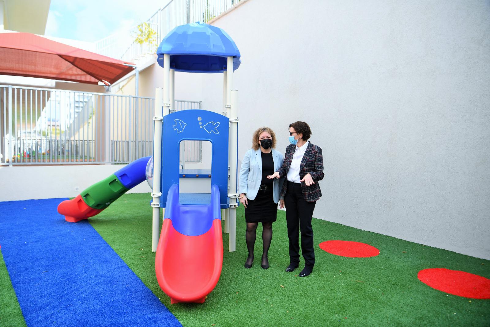 Мэр Хайфы Эйнат Клиш Ротем и ответственная за образование в хайфском муниципалитет Сигал Циони сегодня утром посетили два новых детских сада в районе Неот Перес.