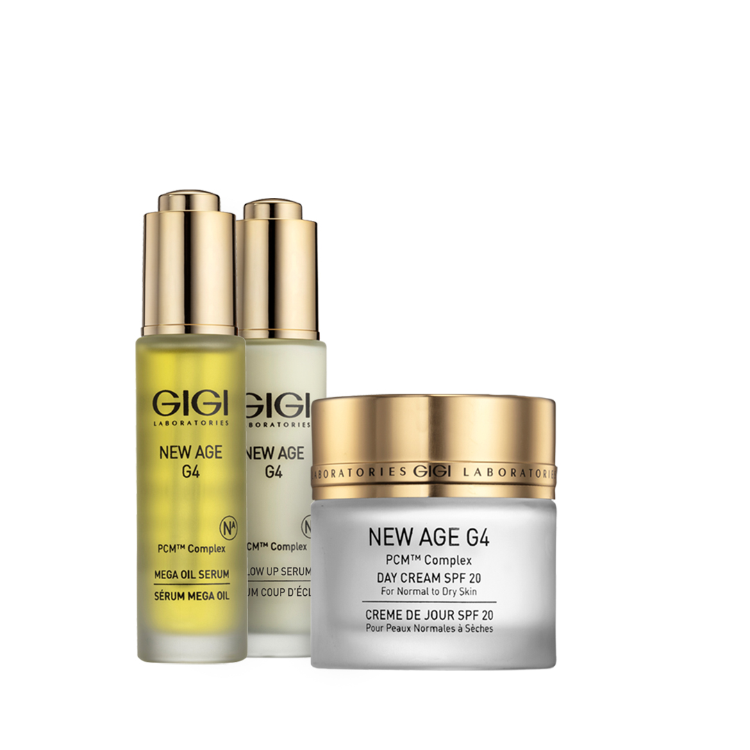 Серия NEW AGE G4 — Многоуровневая реконструкция кожи от GIGI Cosmetics на основе PCM™ Complex: Peptides + Ceramides + Matrix. Уникальный комплекс, который работает на восстановление и поддержание гидролипидной мантии и стимуляции межклеточного матрикса.
