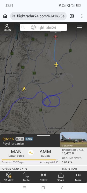 Гражданская авиация Иордании вынуждена нарезать круги только из-за риска поражения самолётов в воздухе.
